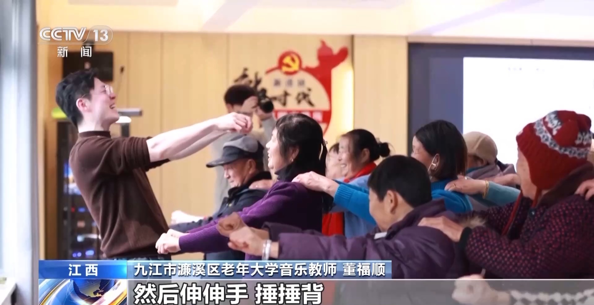 九江市濂溪區(qū)老年大學音樂教師 董福順:我覺得音樂它是有律動的,結合那個律動再加這些動作,然后伸伸手、捶捶背,我覺得這不就是生活中的動作,你把它再帶到課堂里邊兒,帶到音樂里邊兒,課堂就不一樣。