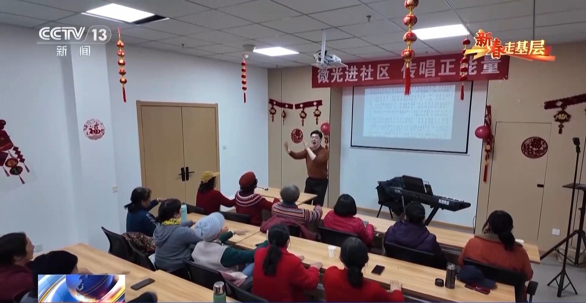 董福順在大學學的是聲樂,在九江市老年大學已經(jīng)當了9年的音樂老師。這個臘月趁著老年大學放假,他把課堂搬進了社區(qū)、村莊和養(yǎng)老院,免費帶大家上課。