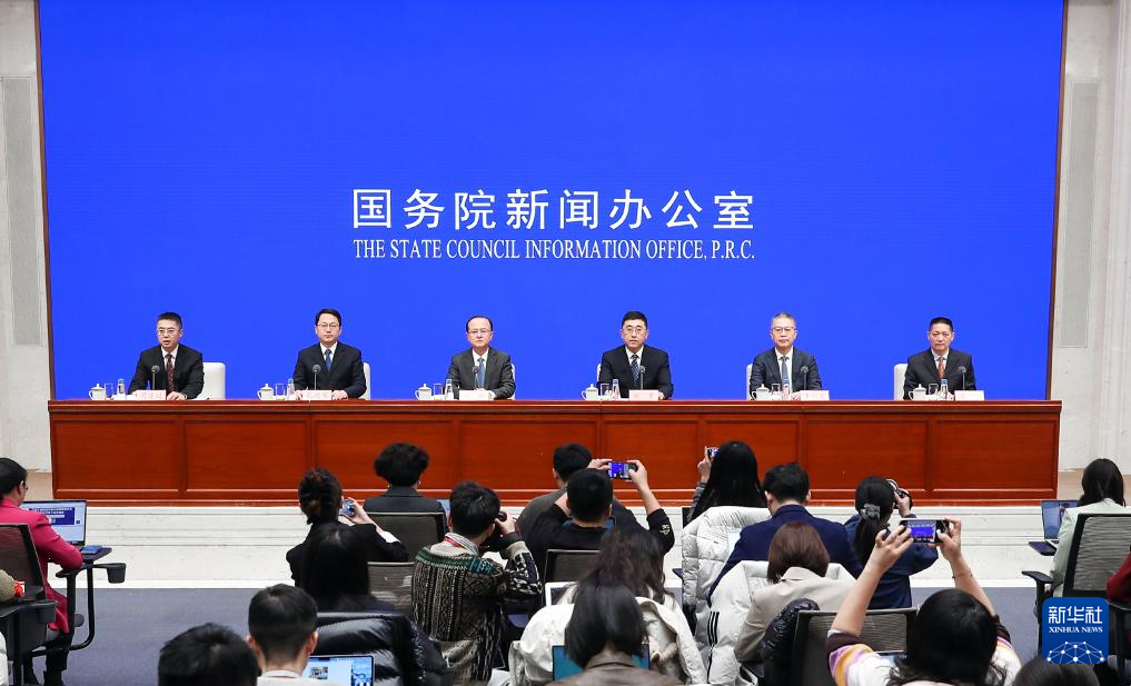 2月6日,國務(wù)院新聞辦公室在北京舉行國務(wù)院政策例行吹風(fēng)會,商務(wù)部副部長鄢東、交通運輸部綜合規(guī)劃司負(fù)責(zé)人劉東、商務(wù)部服務(wù)貿(mào)易和商貿(mào)服務(wù)業(yè)司司長孔德軍、廣電總局網(wǎng)絡(luò)視聽節(jié)目管理司司長王小亮、體育總局體育經(jīng)濟司負(fù)責(zé)人艾郁介紹《加快培育服務(wù)消費新增長點工作方案》有關(guān)情況,并答記者問。新華社發(fā)(趙一帆攝)