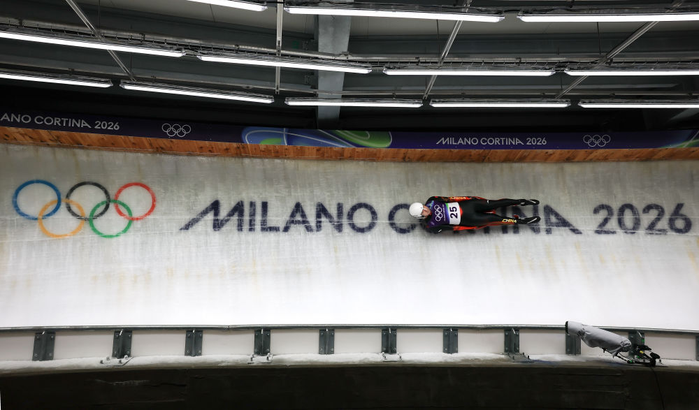 2月7日,中國選手鮑振宇在男子單人雪橇第二輪比賽中。新華社記者 丁旭 攝