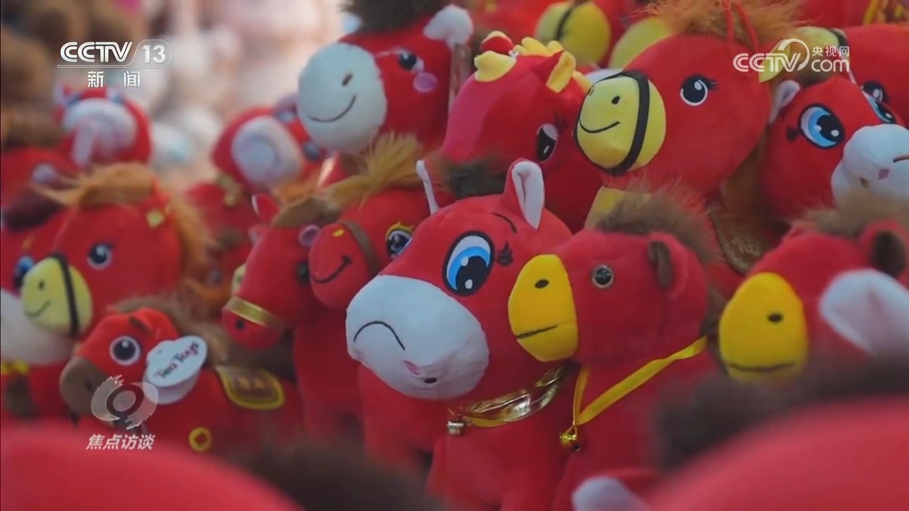 近年來,生肖文化、非遺主題的文創(chuàng)成為了新的過年硬通貨,給孩子帶上兩個馬年玩偶也是今年的潮流。在浙江義烏,今年春節(jié)年貨市場里,生肖經(jīng)濟日益火熱使得一款“哭哭馬”玩偶意外走紅??p反嘴的“錯版小馬”委屈的表情不但沒有被消費者嫌棄,反而因為提供了獨特的情緒價值,很快就成了爆款。