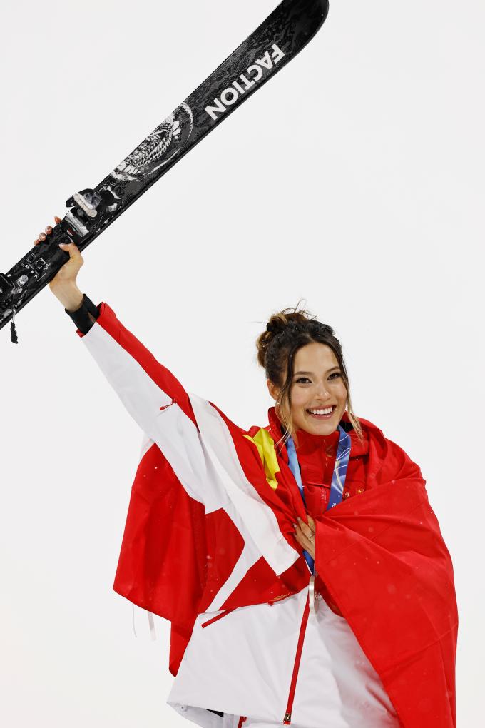 2月16日,谷愛(ài)凌在頒獎(jiǎng)儀式后。新華社記者 王鵬 攝