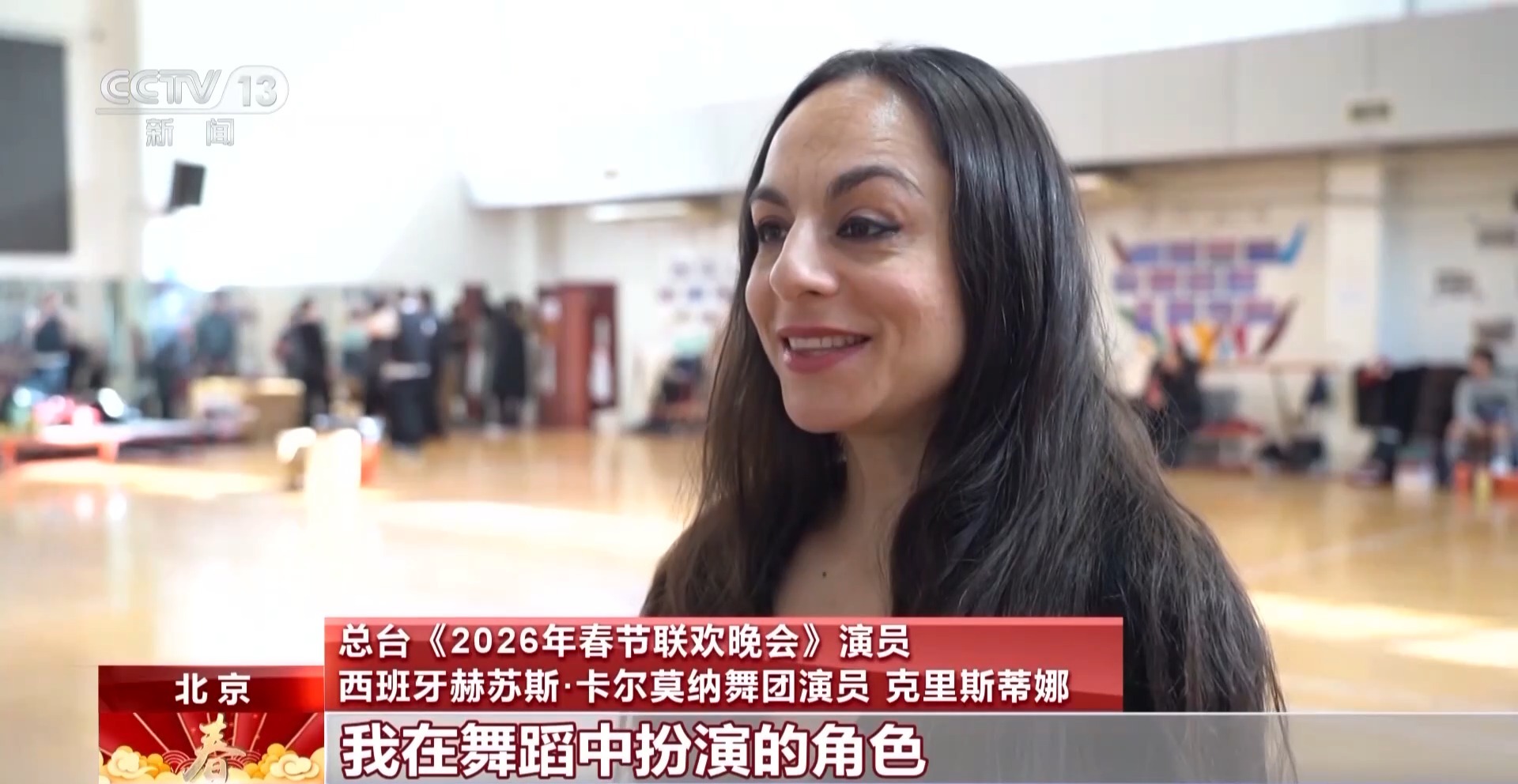 總臺《2026年春節(jié)聯(lián)歡晚會》演員 西班牙赫蘇斯·卡爾莫納舞團演員 克里斯蒂娜:我在舞蹈中扮演的角色展現了西班牙如火般的熱情,這段舞蹈想要傳遞的是世界上的各個民族是可以融合在一起的。每個國家、每種文化都可以在團結中找到共鳴。這樣的畫面很美,也希望觀眾能享受這種獨特的融合之美。