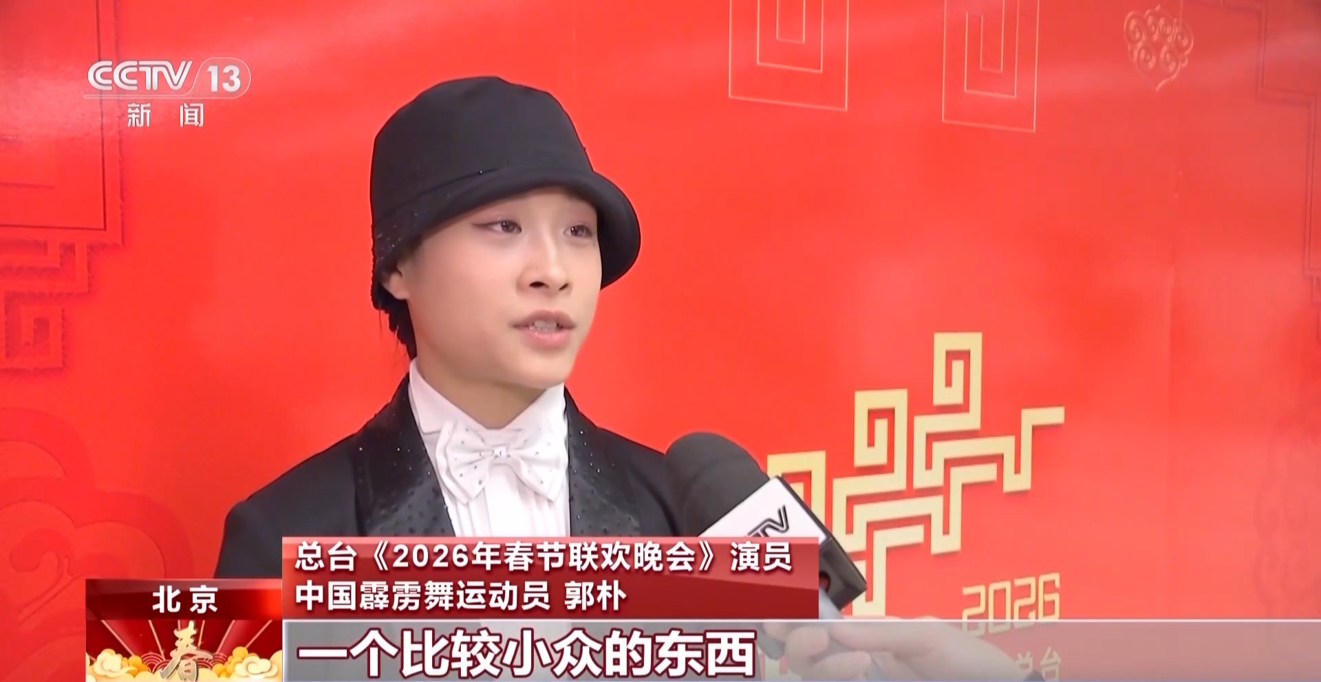 總臺《2026年春節(jié)聯(lián)歡晚會》演員 中國霹靂舞運動員 郭樸:這次在節(jié)目當中做得最多的就是霹靂舞里面的一些技巧難度動作,這是我第一次參加央視春晚,在春晚當天讓大家看到霹靂舞,很開心,因為霹靂舞算是一個比較小眾的東西,它可以帶到全國人民的眼前,這個機會很難得。