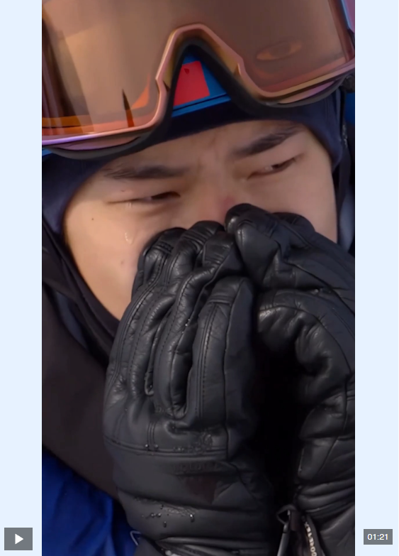完賽后,蘇翊鳴難掩熱淚?!皬谋本┒瑠W會(huì)后的休息,再回到世界最高水平,對(duì)我來說是一個(gè)艱難的過程。”四年間,蘇翊鳴經(jīng)歷了傷病、挫折、低谷,他的腳踝曾一度腫脹到穿不上雪鞋,甚至不能行走,繼續(xù)訓(xùn)練和比賽全靠止疼藥支撐。但在一度幾乎崩潰,幾乎要放棄的時(shí)候,他堅(jiān)持下來了,就在他22歲生日當(dāng)天,蘇翊鳴再次站上奧林匹克之巔,在國際賽場(chǎng)展現(xiàn)出了中國冰雪人的魅力。