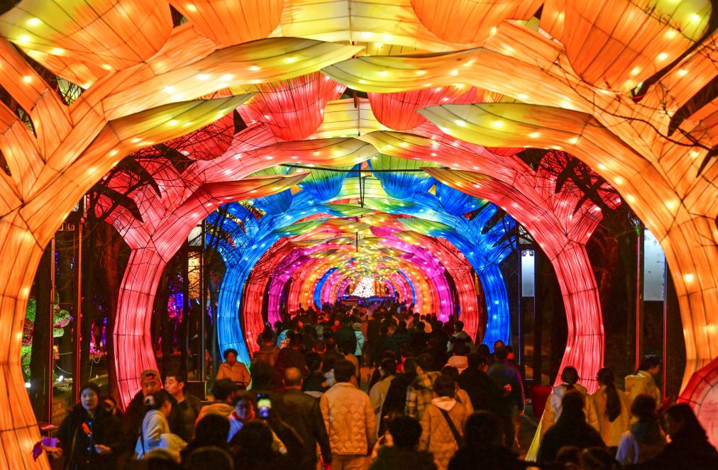 2月19日,游客在河南省洛陽市隋唐城遺址植物園欣賞“神都上元燈會(huì)”主題特色燈展。新華社發(fā)(李衛(wèi)超 攝)