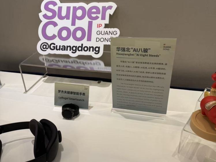 在廣東代表團開放團組活動會場外的走廊里,當(dāng)?shù)囟嗉移髽I(yè)展示廣東特色美食,以及眾多深受全球消費者喜愛的智能產(chǎn)品。其中就有被譽為“華強北AI八駿"的AI產(chǎn)品,這是由全球消費者實打?qū)崱百I出來”的榜單好物,涵蓋無人機、機器人、AI眼鏡、AI學(xué)習(xí)機與音響等,此外還有人形機器人手辦、AI吉他、AI娃娃等最新科技產(chǎn)品,以眼見為實的產(chǎn)品展現(xiàn)廣東經(jīng)濟發(fā)展蓬勃活力,吸引大批外國記者拍照、采訪與試用。