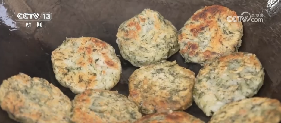 做蒿子粑,選料是第一步。早上新鮮采摘的蒿子清香撲鼻,清洗后焯一下水就能去除它的苦澀味。熬煮好的臘肉蒿子湯倒入糯米和秈米混合的米粉中,揉搓成小團(tuán)再壓扁。起鍋燒油煎至雙面酥黃,蒿子粑就做好了。在桐城市,蒿子粑還走進(jìn)工廠,進(jìn)行規(guī)?;a(chǎn),通過直播進(jìn)行線上銷售,深受消費(fèi)者喜愛。