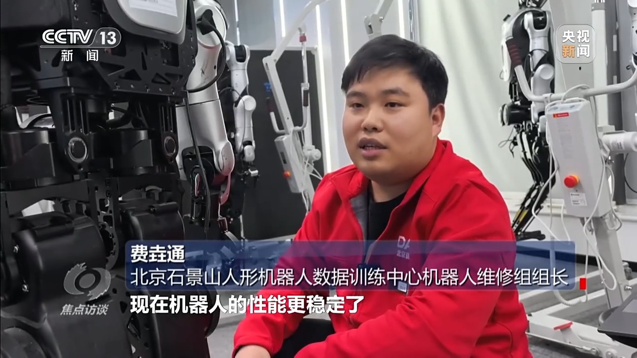 北京石景山人形機(jī)器人數(shù)據(jù)訓(xùn)練中心機(jī)器人維修組組長 費(fèi)垚通:半年前,機(jī)器人需要維修的頻率比現(xiàn)在高,現(xiàn)在機(jī)器人的性能更穩(wěn)定了。但是,真正走入實(shí)際工作場景,還需要很多訓(xùn)練任務(wù)。不過看到它現(xiàn)在的進(jìn)步效率,我堅(jiān)信它能夠在不久的未來,在更艱苦、更危險(xiǎn)的環(huán)境替我們分擔(dān)工作,我相信這一天一定會到來。