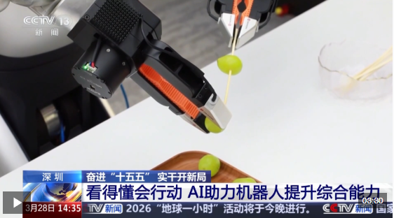 在深圳寶安的一家機(jī)器人企業(yè),里面擺放著不少機(jī)器人,有的正在分揀零件、動(dòng)作流暢,有的在穿糖葫蘆。再看一雙靈巧手,別看它不大,本事可不小。