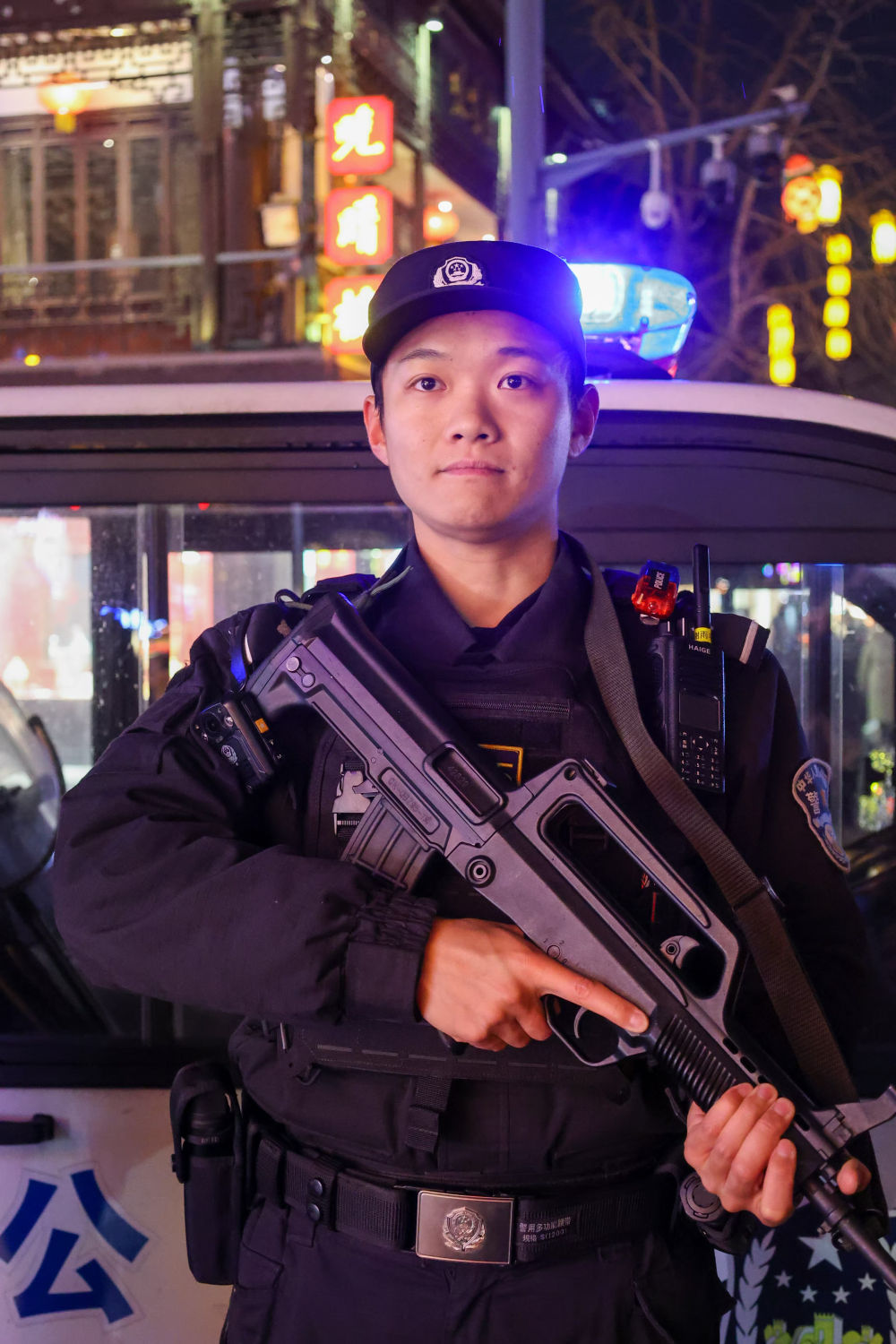 謝雨豐在南京市新街口地區(qū)執(zhí)勤(2024年攝)。新華社發(fā)
