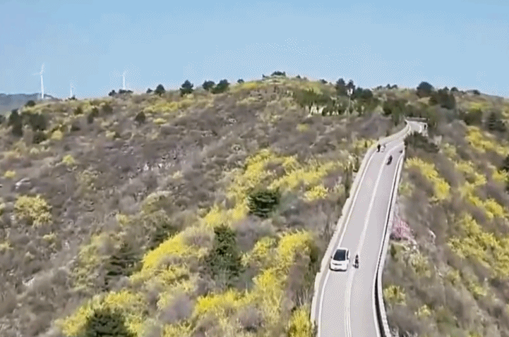 眼下,在河南新鄉(xiāng)衛(wèi)輝市太行山區(qū),萬(wàn)畝野生連翹迎來(lái)盛花期,漫山金黃鋪滿(mǎn)山巒,秀美風(fēng)光吸引了各地游客觀光游覽、打卡拍照。