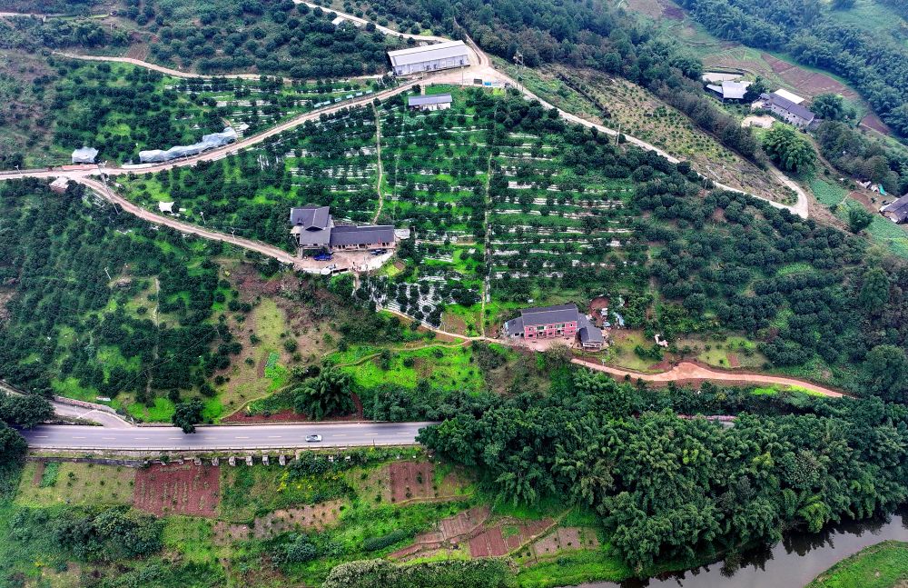 基地負(fù)責(zé)人賀君麗站在坡地上,隨著指尖輕點(diǎn)手機(jī)屏幕,縱橫交錯(cuò)的管道應(yīng)聲“蘇醒”:細(xì)密的水霧裊裊溢出,裹挾著淡淡花香漫過整片果園。風(fēng)過霧散,不過四五分鐘,管護(hù)便已完成。