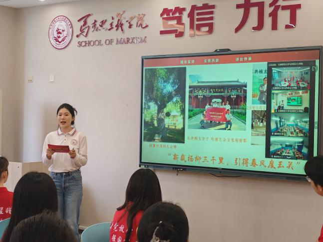 “同學(xué)們,你們知道嗎?國家安全就像一位‘隱身超人’,平時(shí)我們看不見它,但它卻時(shí)刻守護(hù)在我們身邊?!贬槍πW(xué)生認(rèn)知特點(diǎn),宣講團(tuán)成員劉淇、殷曉琪化身“云端講解員”,帶領(lǐng)邊疆學(xué)生沉浸式參觀馬克思主義學(xué)院“安邦固本 強(qiáng)基致遠(yuǎn)”總體國家安全觀主題展覽。從國家安全的基本內(nèi)涵到各領(lǐng)域?qū)嵺`,再到天津的具體案例,復(fù)雜的理論通過生動(dòng)的展板和故事變得可知、可感、可親近,在孩子們心中勾勒出國家安全的立體圖景。