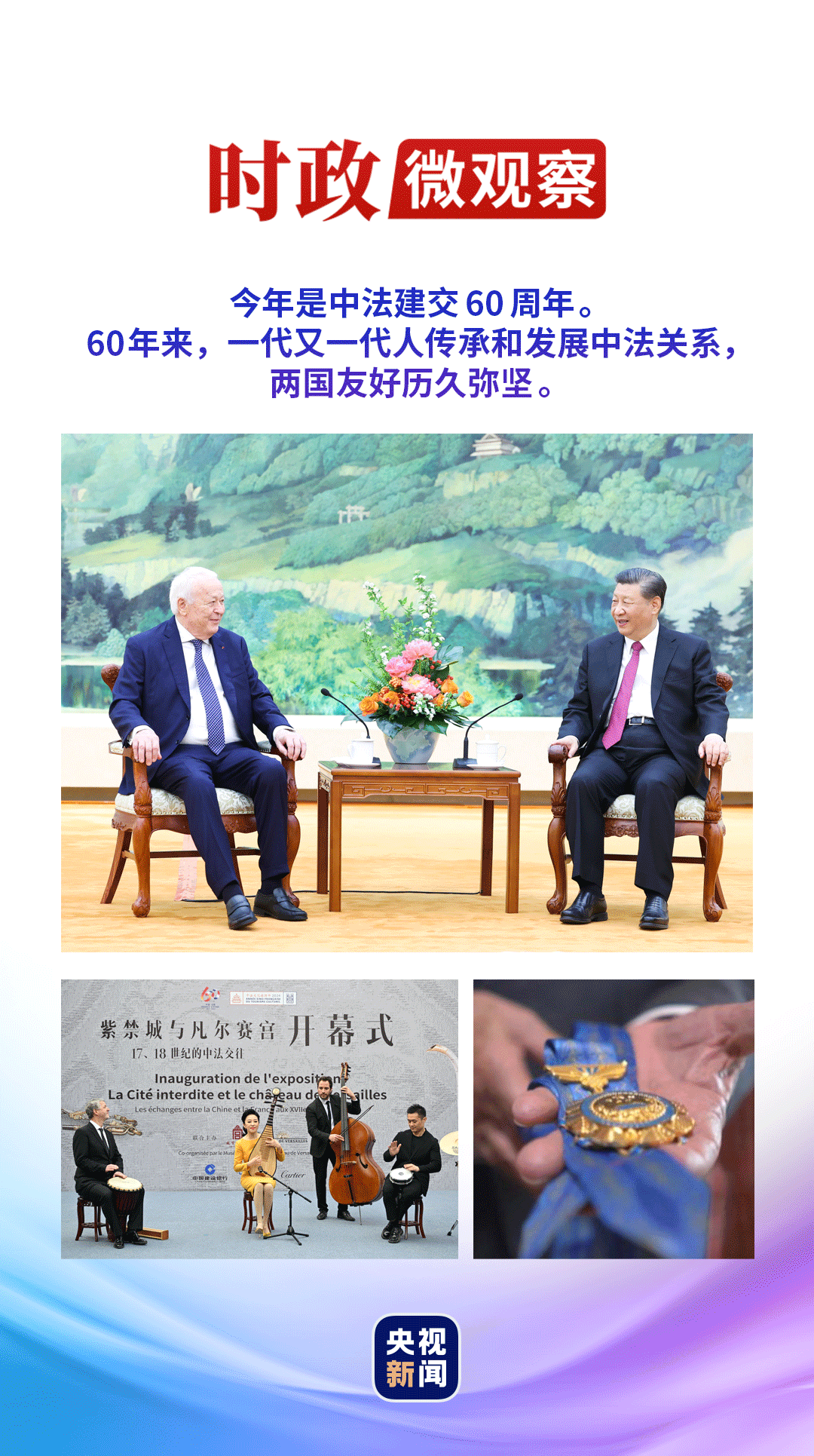 今年4月8日,再次會見中國人民這位老朋友,習(xí)近平主席撫今追昔:“60年來,一代又一代人傳承和發(fā)展中法關(guān)系,兩國友好歷久彌堅。中方珍視中法友誼,愿同法方進(jìn)一步加強(qiáng)高層交往,密切交流合作,推動中法關(guān)系邁上更高水平。”