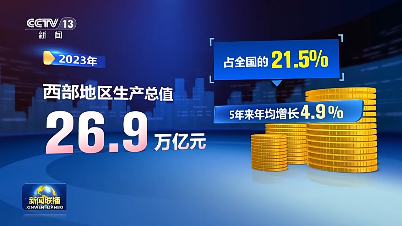 黨的十八大以來,習近平總書記考察調(diào)研的足跡遍布西部12個省區(qū)市,為新時代西部地區(qū)發(fā)展把脈定向、擘畫藍圖。黨的二十大報告提出,推動西部大開發(fā)形成新格局。沿著總書記指引的方向,西部地區(qū)抓重點、補短板、強弱項,經(jīng)濟社會發(fā)展取得重大歷史性成就。國家發(fā)展改革委等部門數(shù)據(jù)顯示,2023年,西部地區(qū)生產(chǎn)總值26.9萬億元,占全國的21.5%,5年來年均增長4.9%。