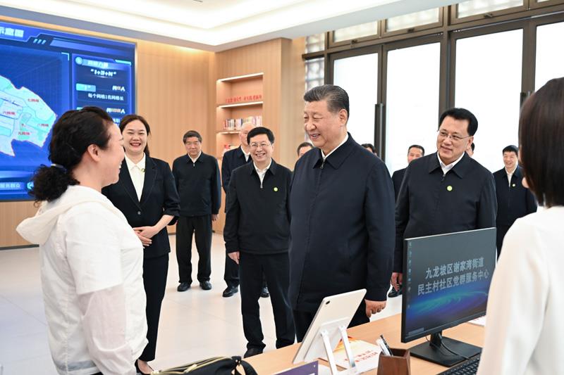 2024年4月22日,習近平總書記來到重慶九龍坡區(qū)謝家灣街道民主村社區(qū),察看小區(qū)改造和便民服務情況,聽取提升基層治理效能、為基層減負情況介紹。