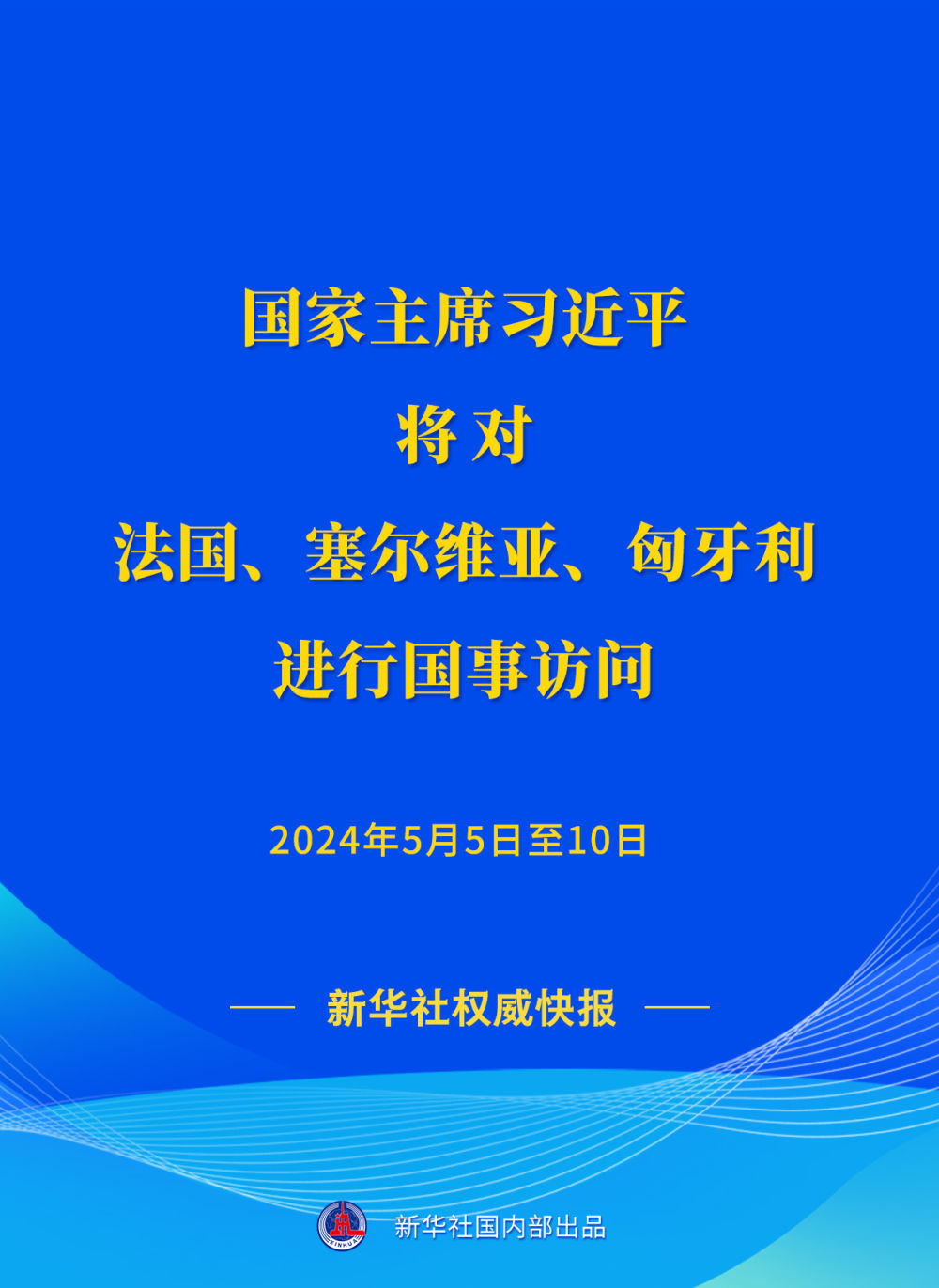 外交部發(fā)言人華春瑩4月29日宣布:應(yīng)法蘭西共和國總統(tǒng)馬克龍、塞爾維亞共和國總統(tǒng)武契奇、匈牙利總統(tǒng)舒尤克和總理歐爾班邀請,國家主席習(xí)近平將于5月5日至10日對上述三國進(jìn)行國事訪問。