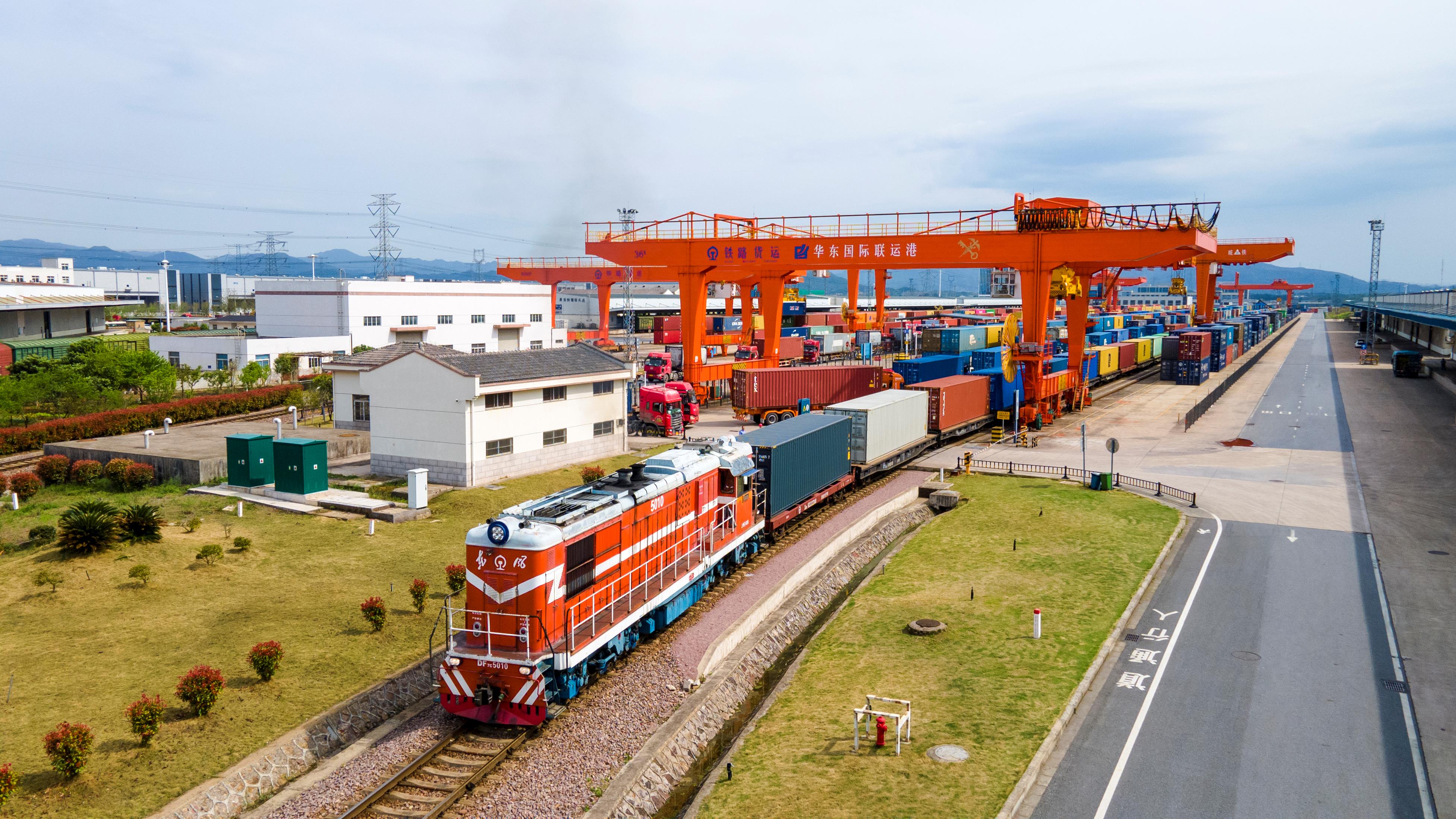 △2024年4月1日,浙江省金華華東國際聯(lián)運(yùn)港,一列中歐班列裝載110個(gè)標(biāo)箱日用百貨、電動(dòng)工具、機(jī)械裝備等貨物從鐵路金華南貨場啟程駛往匈牙利布達(dá)佩斯。