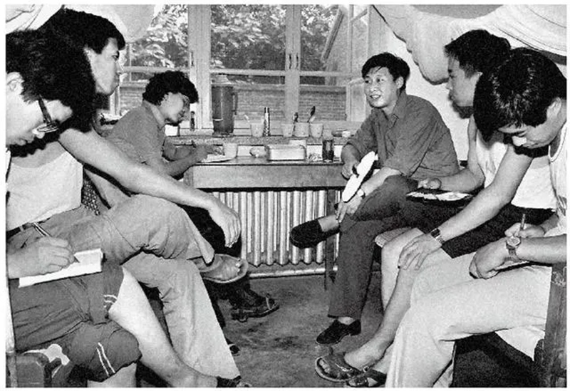 1984年7月29日,習(xí)近平與中國人民大學(xué)暑期社會實踐團成員在正定縣政府招待所宿舍座談。