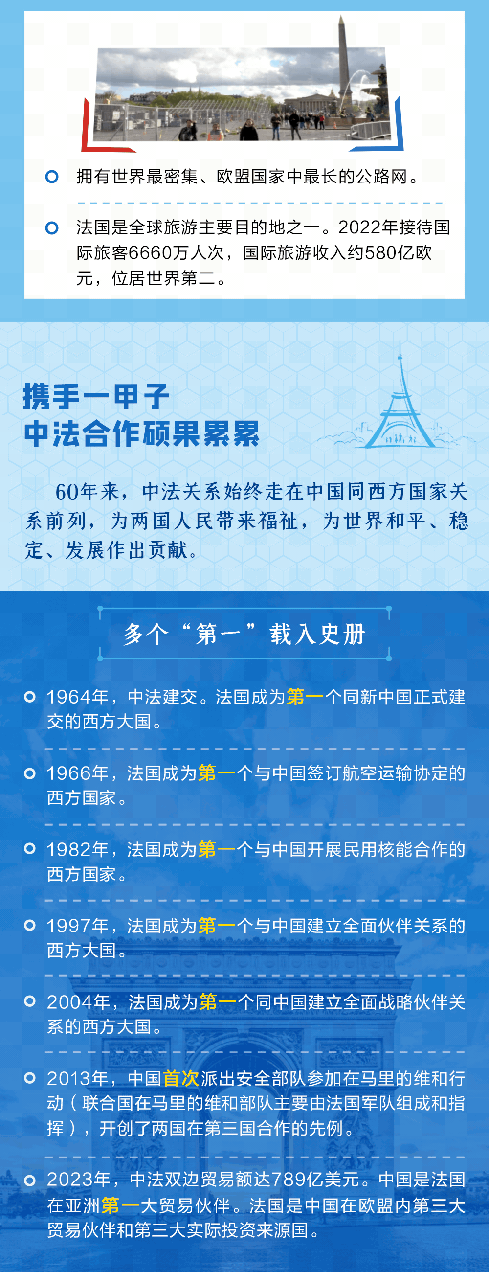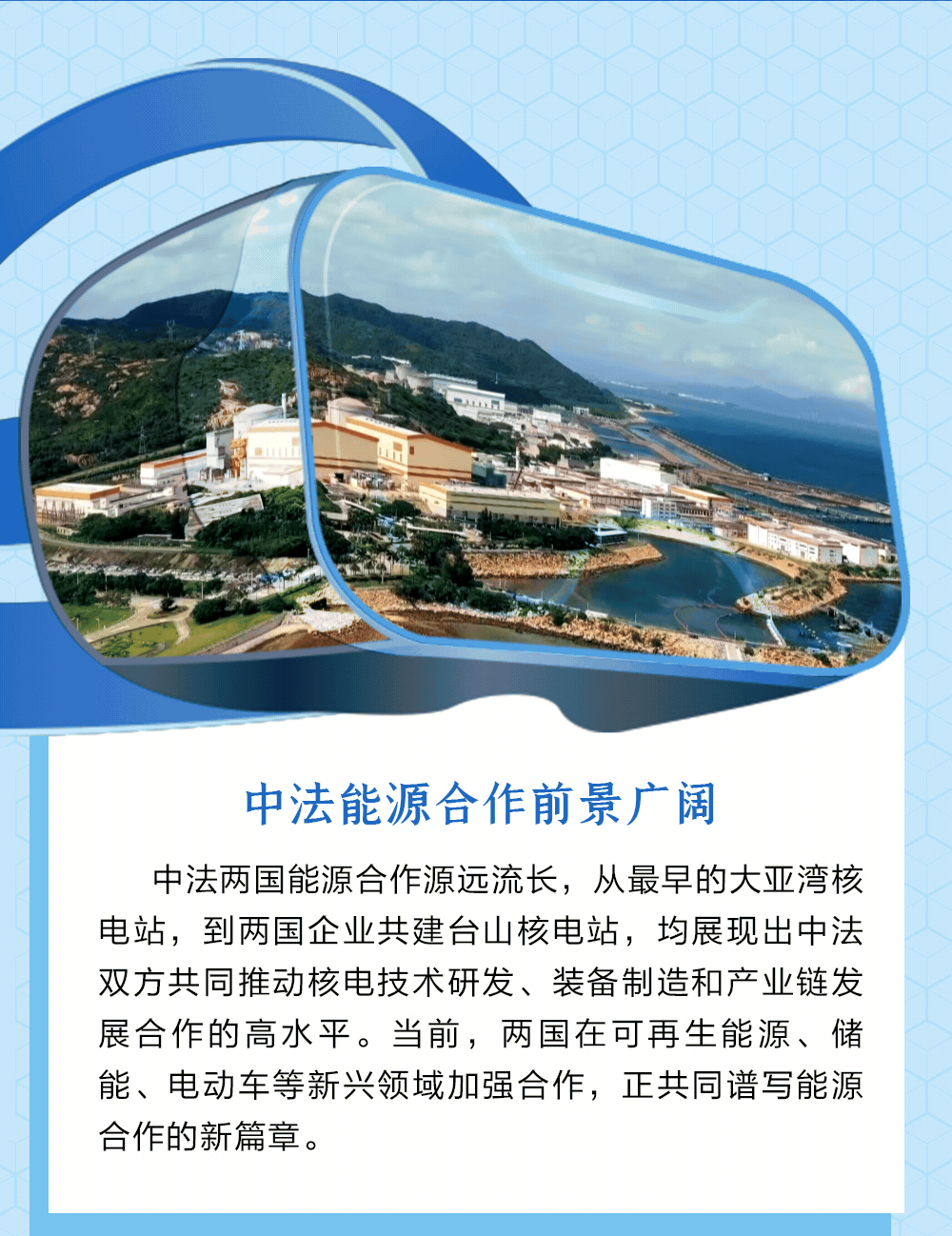 “法國是第一個同新中國正式建交的西方大國,也是最早同中國建立戰(zhàn)略伙伴關(guān)系和開展戰(zhàn)略對話、最早同中國開展民用核能合作的國家?!绷暯街飨瘡娬{(diào),中法是特殊的朋友,共贏的伙伴。