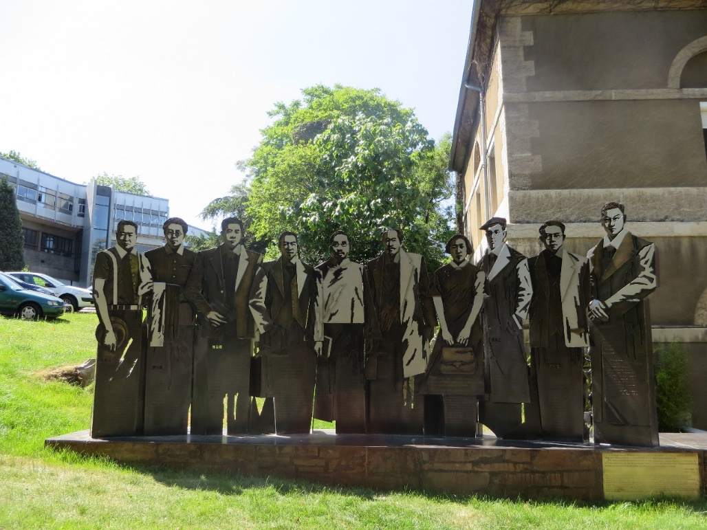 在里昂中法大學歷史博物館前方,屹立著廣州市政府贈送的雕像。蔡元培、常書鴻等10位與里昂中法大學關系密切的中國學者眺望前方,注視著來來往往的留學生。