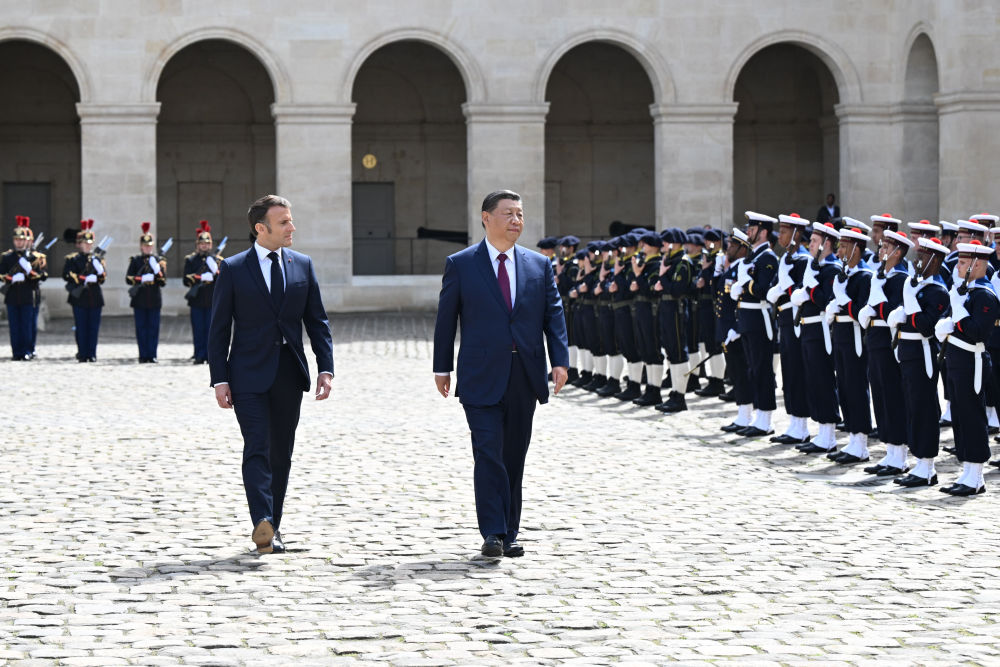 當(dāng)?shù)貢r(shí)間5月6日下午,正在法國進(jìn)行國事訪問的國家主席習(xí)近平在巴黎出席法國總統(tǒng)馬克龍舉行的隆重盛大歡迎儀式。