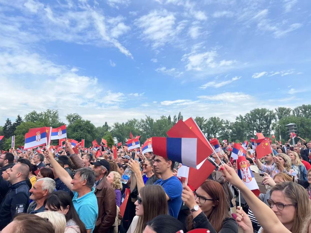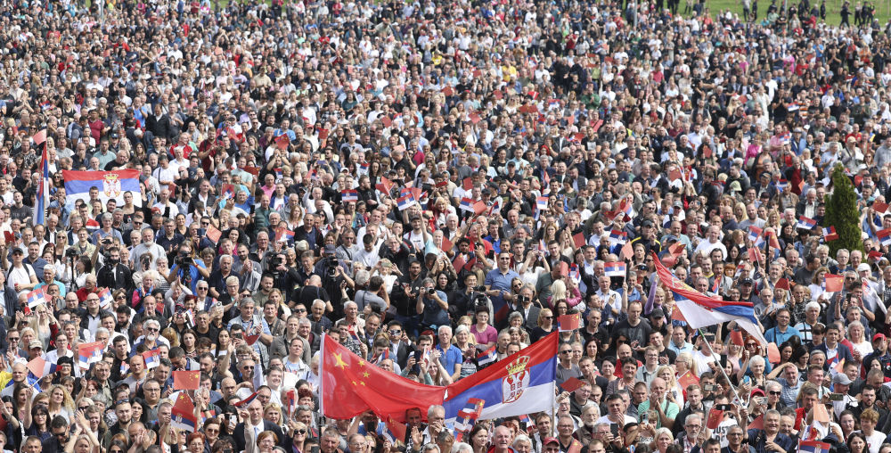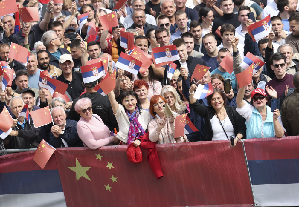 大廈廣場上,一萬五千名塞爾維亞民眾揮舞中塞兩國國旗,對(duì)習(xí)近平表示最熱烈的歡迎。