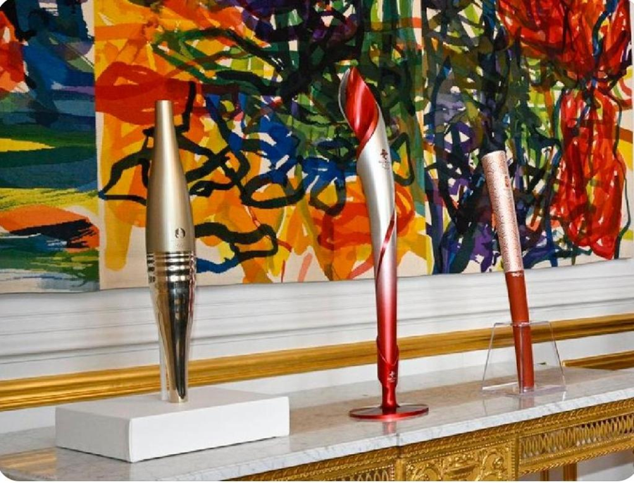 在法國愛麗舍宮一層肖像廳,三支奧運(yùn)火炬并排而立,格外引人注目。這是中法兩國元首夫婦互贈禮品之一。