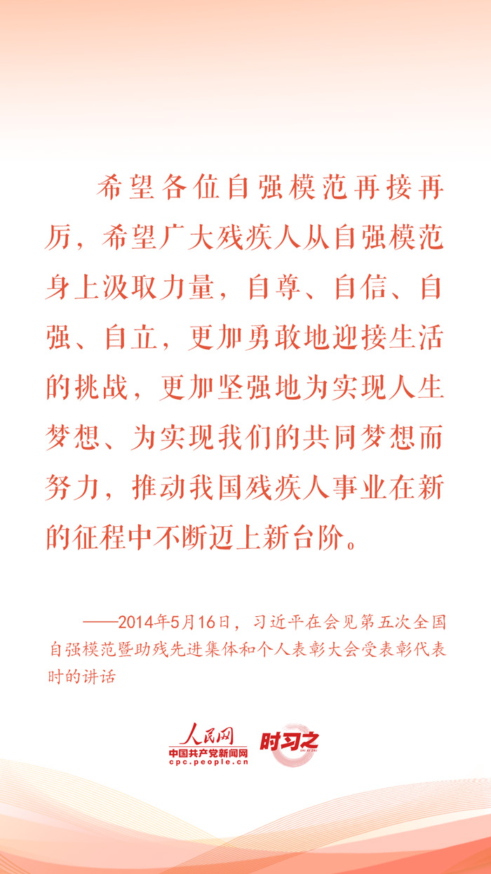 2024年5月19日是第三十四次全國助殘日。對于殘疾人這個特殊群體,習(xí)近平總書記始終格外關(guān)心、格外關(guān)注,在不同場合頻頻為他們加油鼓勁,勉勵他們活出精彩的人生。
