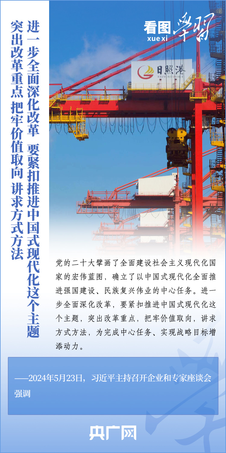 改革是發(fā)展的動力。5月23日,習近平總書記在山東濟南主持召開企業(yè)和專家座談會并發(fā)表重要講話??倳洀娬{(diào),進一步全面深化改革,要緊扣推進中國式現(xiàn)代化這個主題,突出改革重點,把牢價值取向,講求方式方法,為完成中心任務、實現(xiàn)戰(zhàn)略目標增添動力。一起來學習!