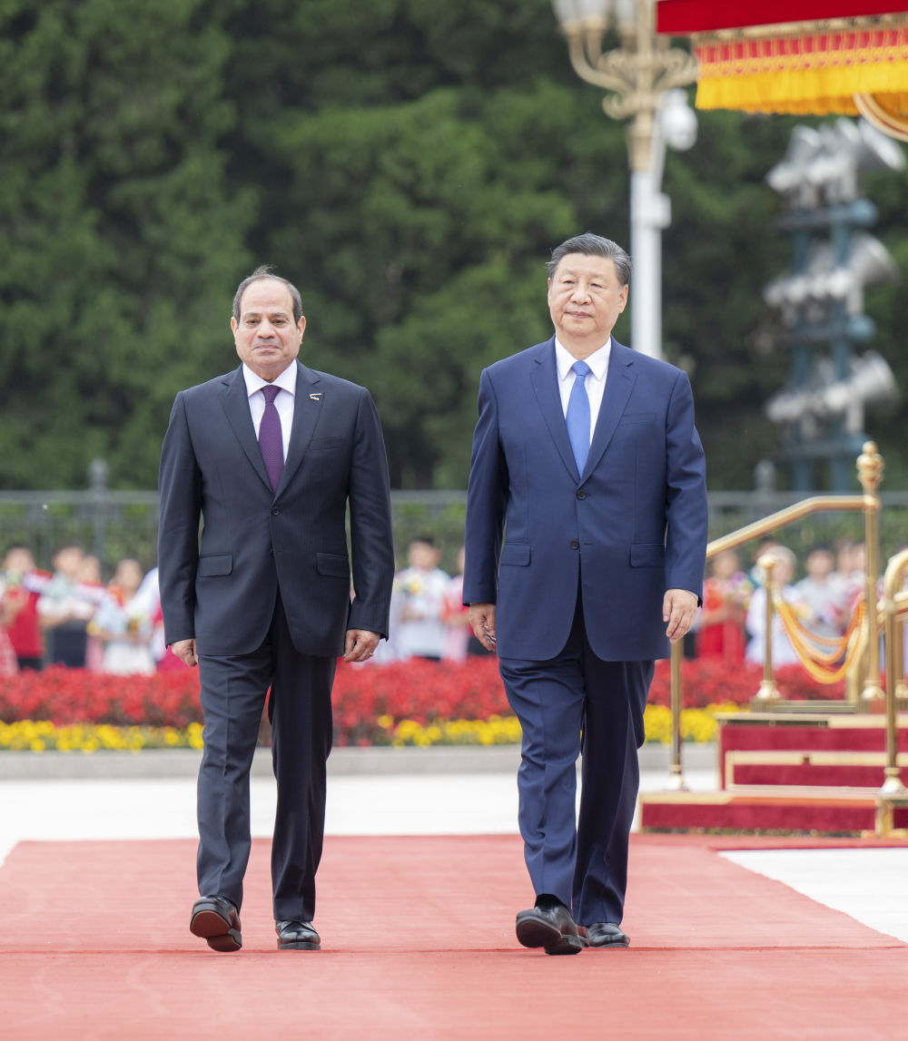 塞西表示,很高興來華進(jìn)行國事訪問并出席中阿合作論壇第十屆部長級會議開幕式。當(dāng)前世界正處于深刻復(fù)雜變化之中,中東地區(qū)深陷危機(jī)。埃方期待同中方進(jìn)一步深化全面戰(zhàn)略伙伴關(guān)系,努力促進(jìn)地區(qū)和平穩(wěn)定。埃方恪守一個中國原則,堅(jiān)定支持中方在涉臺、涉港、涉藏、人權(quán)等核心利益問題上的立場,堅(jiān)定支持中國實(shí)現(xiàn)國家完全統(tǒng)一。埃方歡迎更多中國企業(yè)赴埃投資合作,助力埃及制造業(yè)發(fā)展和工業(yè)化進(jìn)程。希望以今年“埃中伙伴年”為契機(jī),密切人文交流,加強(qiáng)兩國在信息通訊、人工智能、新能源、糧食安全、金融等方面合作。埃方贊賞習(xí)近平主席提出的系列全球倡議,愿同中方密切多邊協(xié)作,為人類和平進(jìn)步作出積極貢獻(xiàn)。