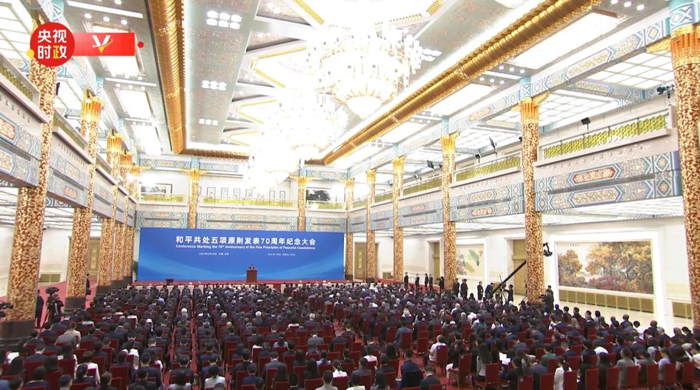6月28日上午,和平共處五項原則發(fā)表70周年紀(jì)念大會在北京人民大會堂隆重舉行。國家主席習(xí)近平出席紀(jì)念大會并發(fā)表題為《弘揚和平共處五項原則,攜手構(gòu)建人類命運共同體》的重要講話。