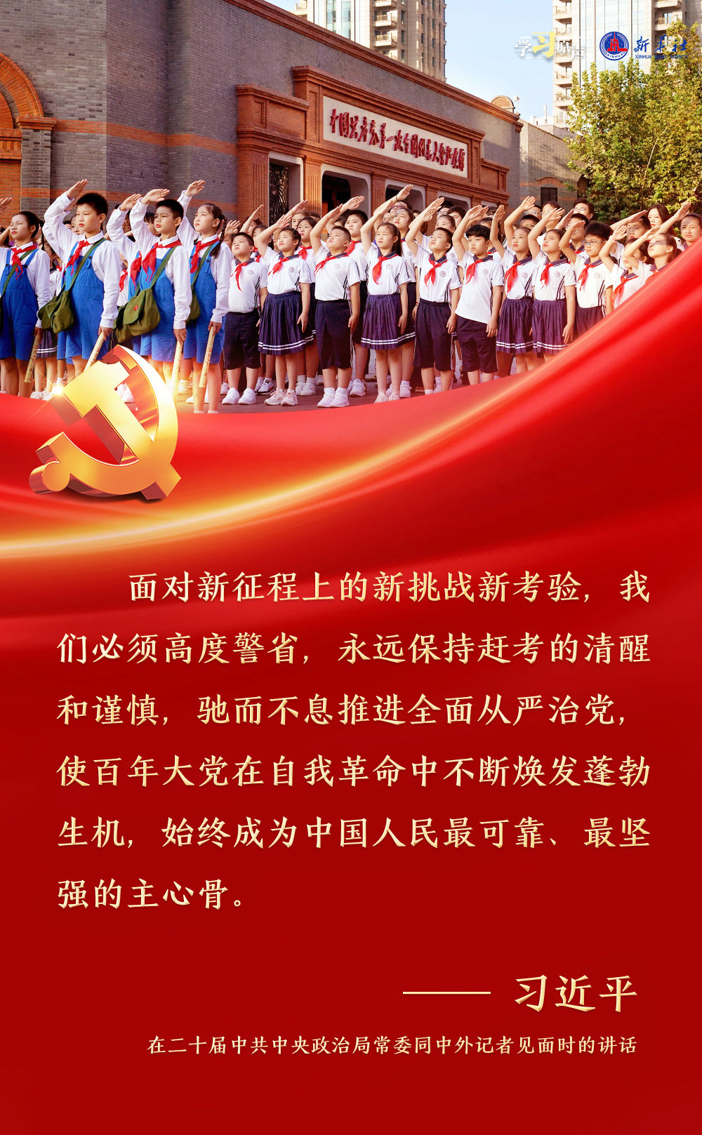 習近平總書記強調,面對新征程上的新挑戰(zhàn)新考驗,我們必須高度警省,永遠保持趕考的清醒和謹慎,馳而不息推進全面從嚴治黨,使百年大黨在自我革命中不斷煥發(fā)蓬勃生機,始終成為中國人民最可靠、最堅強的主心骨。