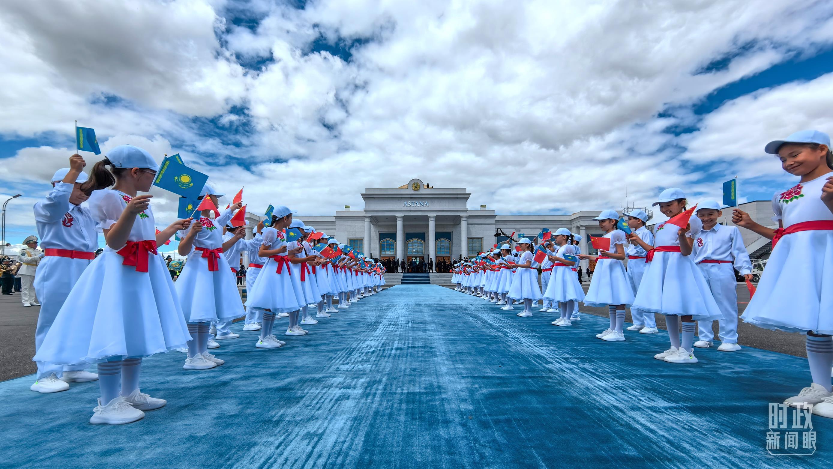 從北京到阿斯塔納,千里之外的中亞上空響起熟悉的東方旋律。在迎賓儀式現(xiàn)場(chǎng),十余名哈薩克斯坦少年兒童用中文演唱《歌唱祖國(guó)》。