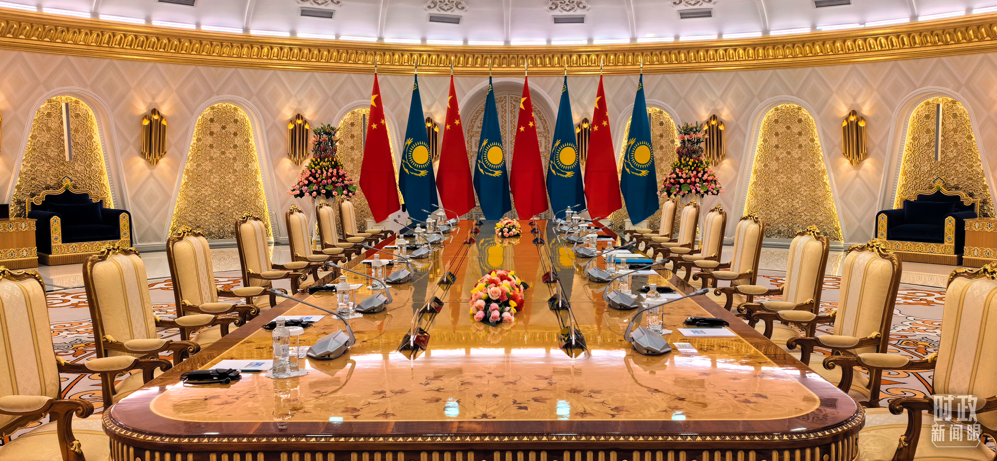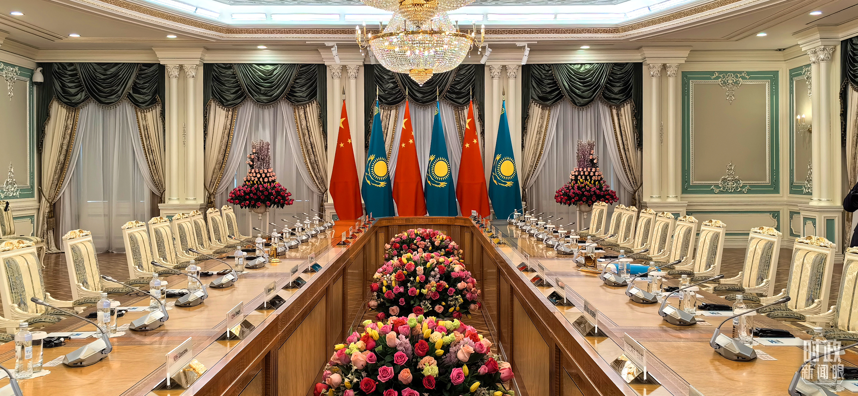 中哈元首小范圍會(huì)談開始前的現(xiàn)場。(總臺(tái)央視記者劉岳拍攝)