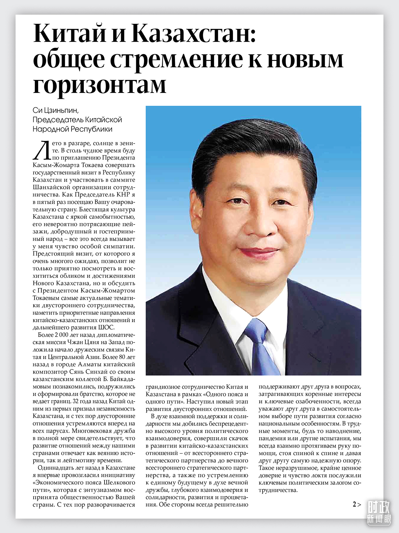 習(xí)近平主席在《哈薩克斯坦真理報(bào)》上發(fā)表的題為《同心篤行 續(xù)寫中哈關(guān)系新篇章》的署名文章。(總臺(tái)記者張譽(yù)耀提供)