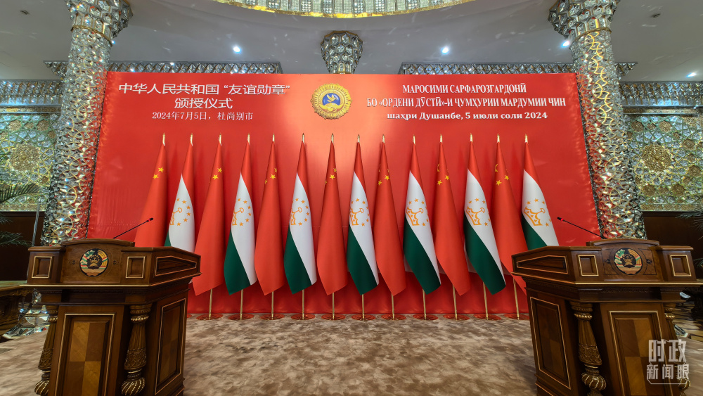 此訪期間,中塔友誼見證又一個(gè)“高光時(shí)刻”:習(xí)近平主席在杜尚別總統(tǒng)府舉行隆重授勛儀式,向拉赫蒙總統(tǒng)頒授中華人民共和國(guó)“友誼勛章”。