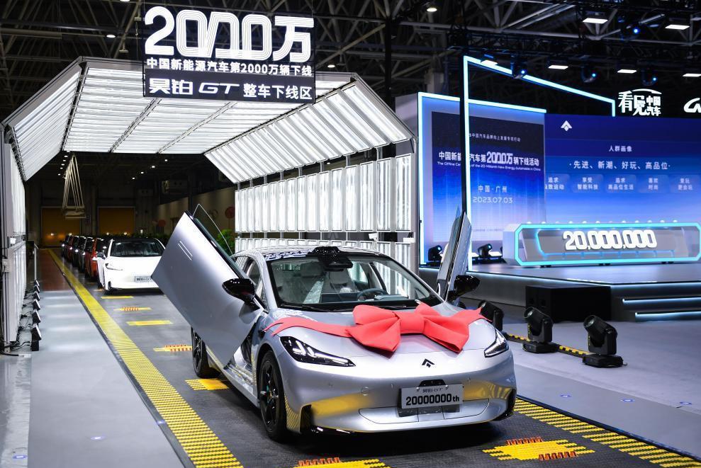 2023年7月3日,我國第2000萬輛新能源汽車在廣州下線。