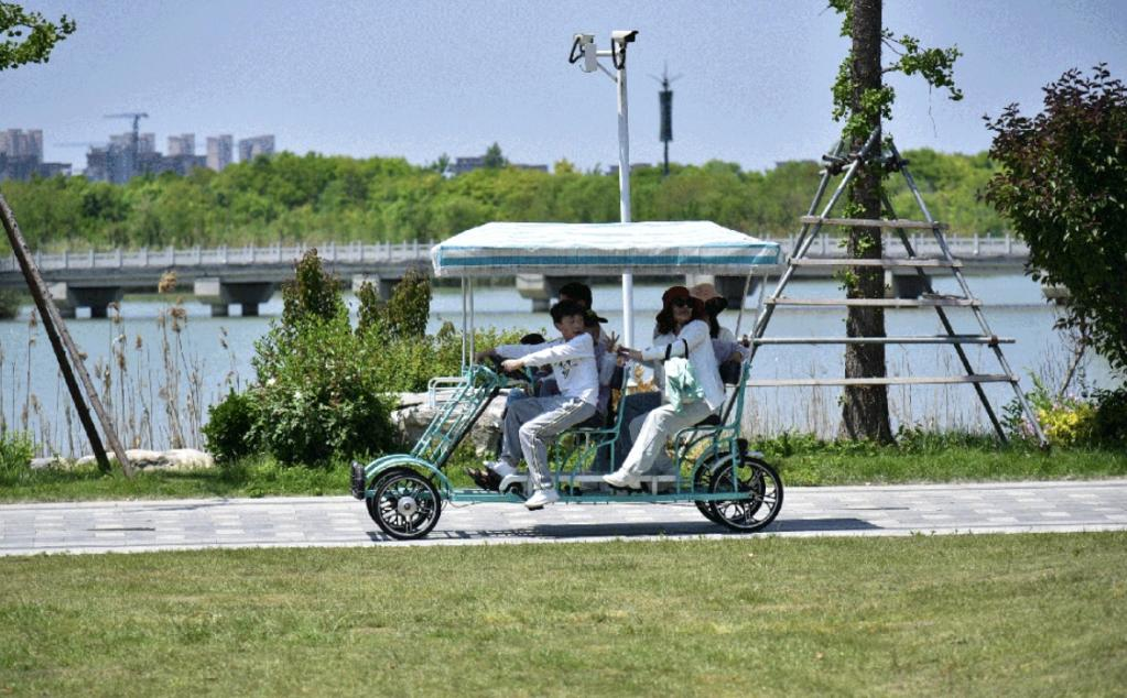 游客們在潘安湖國家濕地公園游玩(央廣網(wǎng)發(fā) 楊勇 攝)