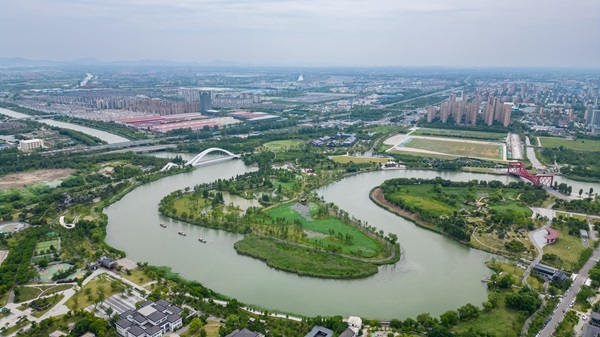 運(yùn)河三灣生態(tài)文化公園鳥瞰圖(央廣網(wǎng)記者 鄭楚豫 攝)
