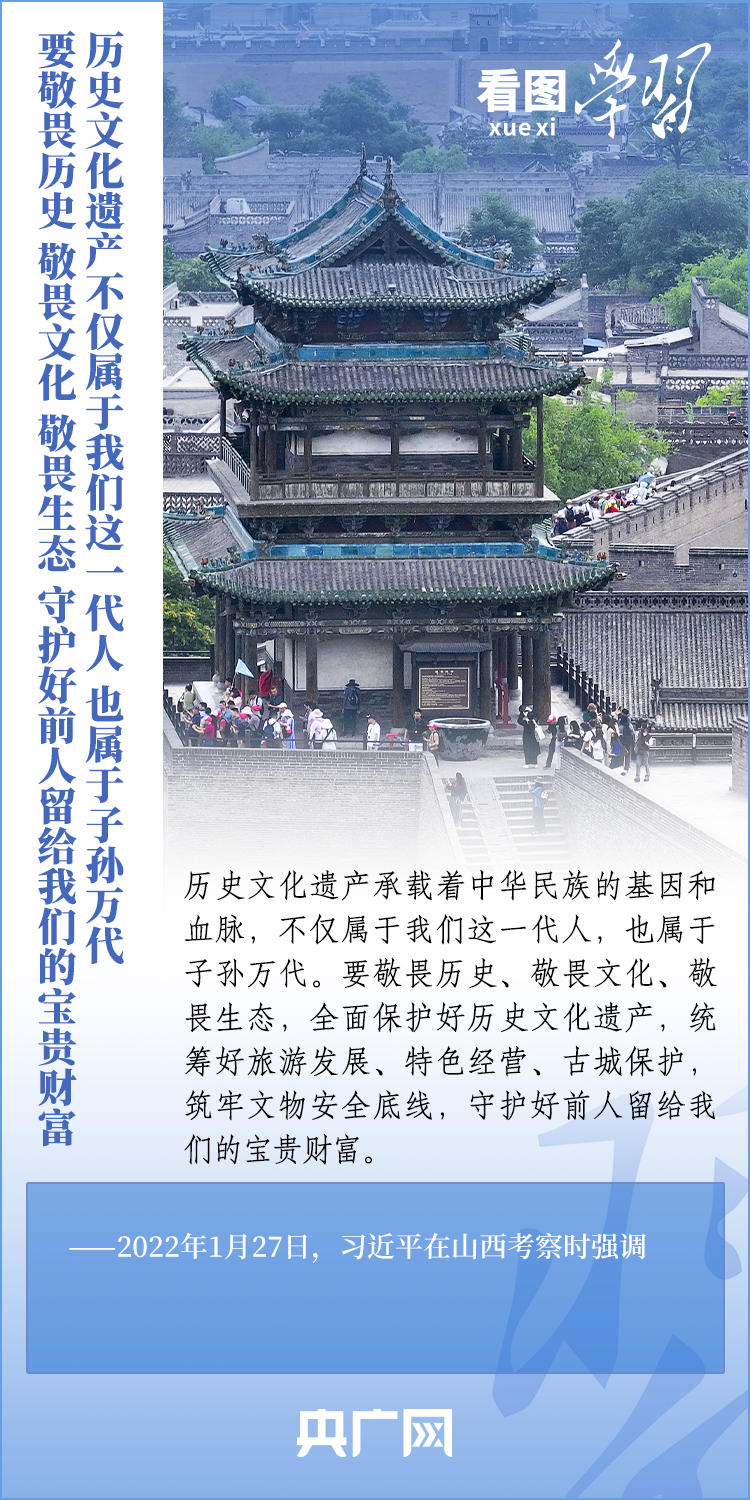 文化遺產是中華優(yōu)秀傳統(tǒng)文化的重要載體,承載著中華民族的基因和血脈。做好歷史文化遺產保護傳承工作,習近平總書記強調,要統(tǒng)籌好旅游發(fā)展、特色經營、古城保護,筑牢文物安全底線,守護好前人留給我們的寶貴財富。
