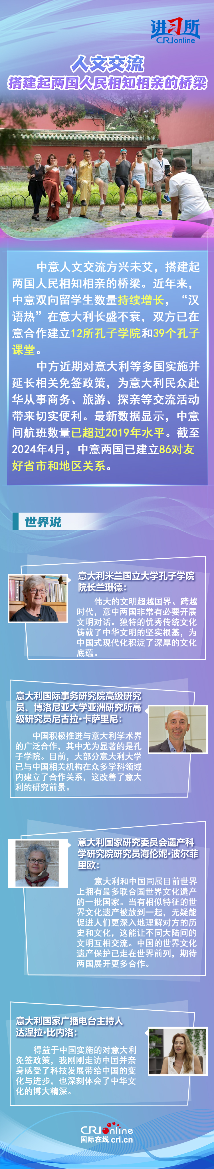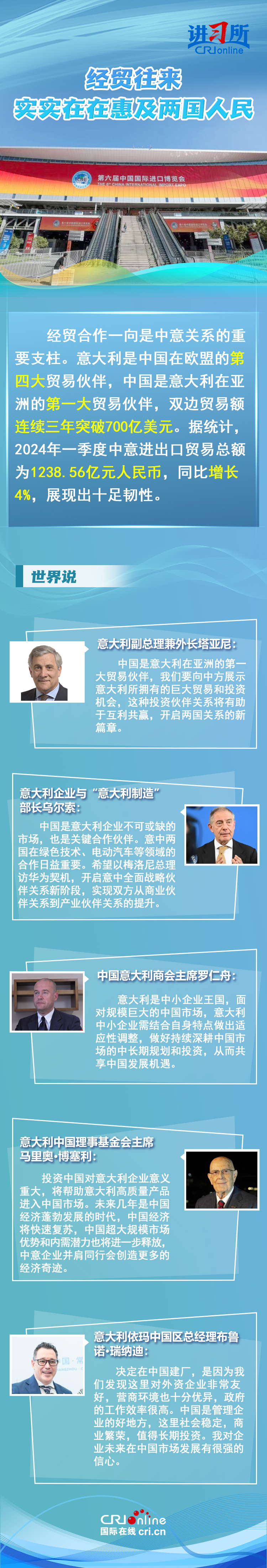 梅洛尼表示,中國對意大利而言是一個極為重要的經貿和文化合作伙伴。意大利各界人士認為,中意并肩同行會創(chuàng)造更多的經濟奇跡,同時兩國非常有必要開展文明對話,期待未來兩國展開更多領域合作,開啟全面戰(zhàn)略伙伴關系新階段。