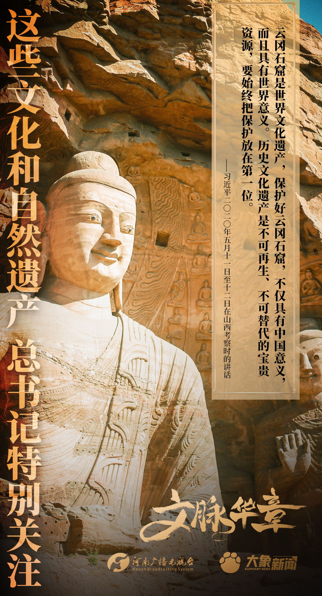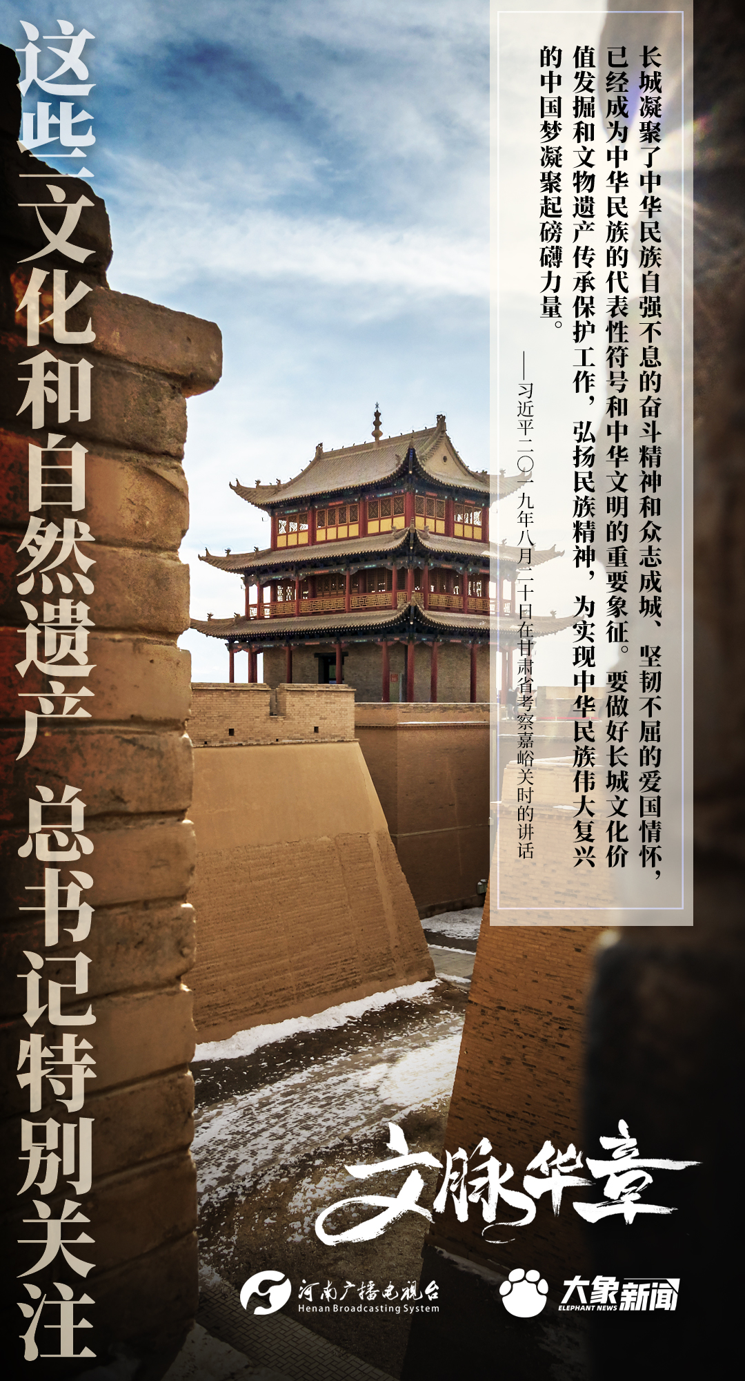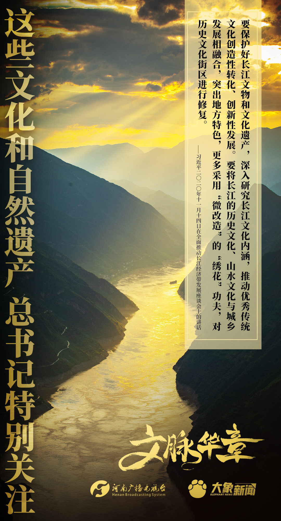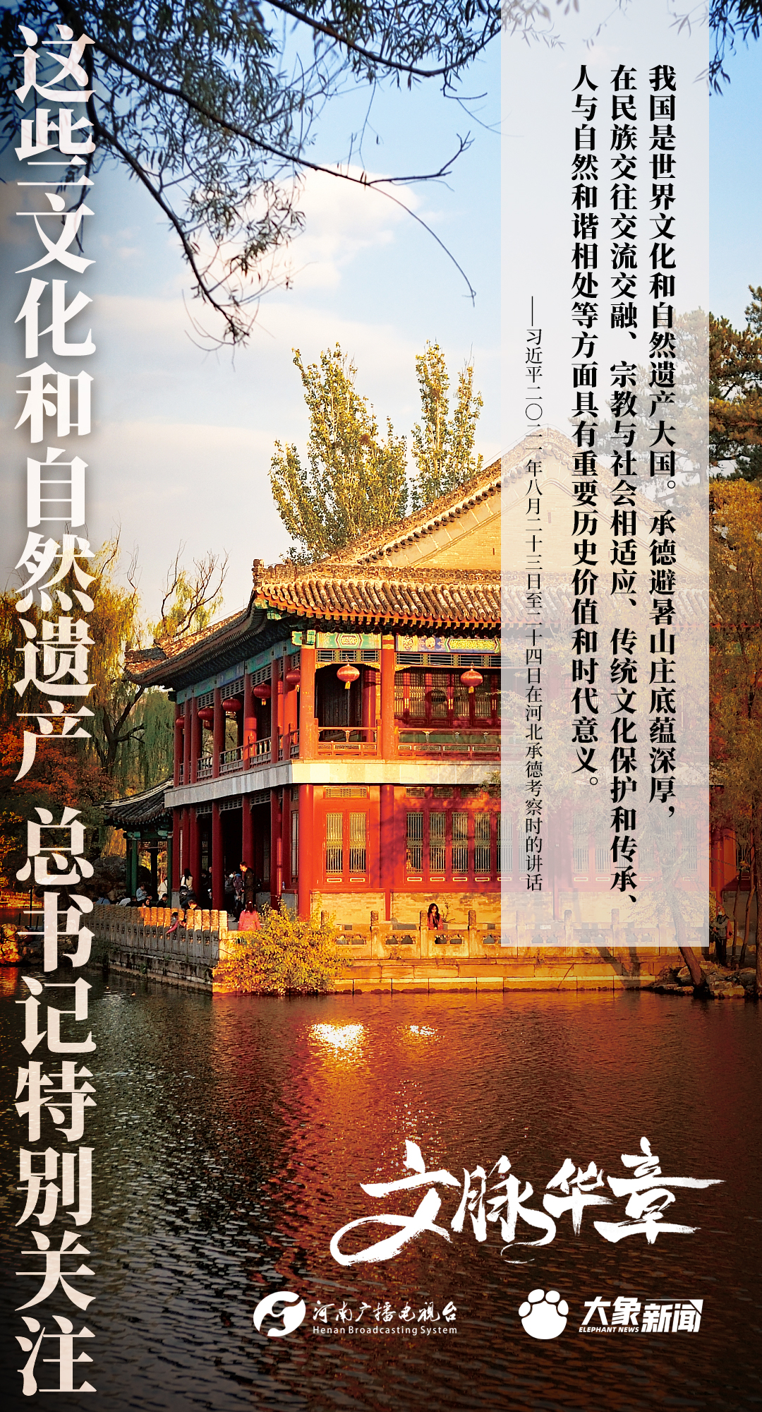 黨的十八大以來,習近平總書記對歷史文化遺產(chǎn)和自然遺產(chǎn)的保護、傳承、利用高度重視,進行了一系列考察調(diào)研,作出一系列重要講話重要指示。大象新聞為您梳理,邀您一起學習、領(lǐng)悟、踐行。