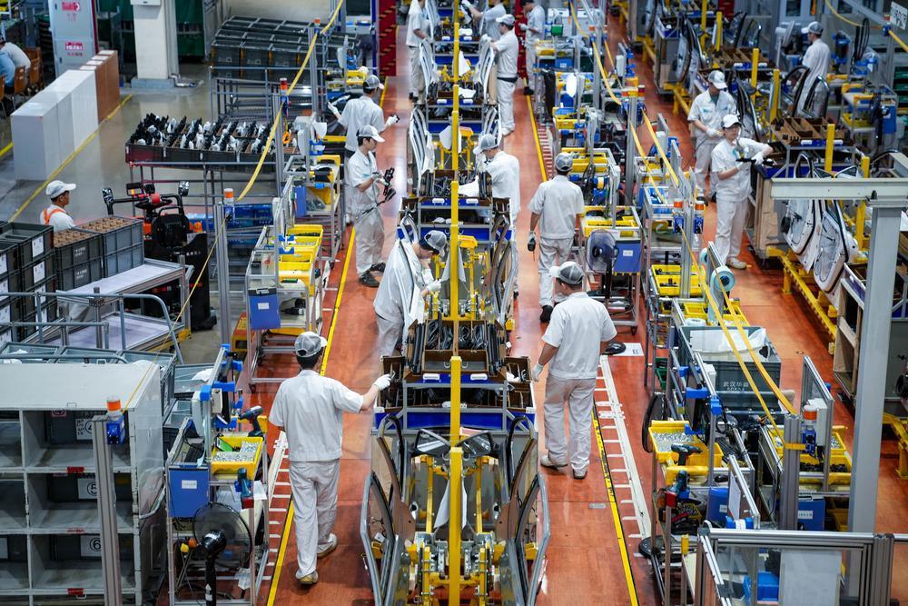 浙江湖州市長興經(jīng)濟(jì)技術(shù)開發(fā)區(qū)一家汽車部件公司,全自動機(jī)器人高速運(yùn)轉(zhuǎn)生產(chǎn)新能源汽車配件。