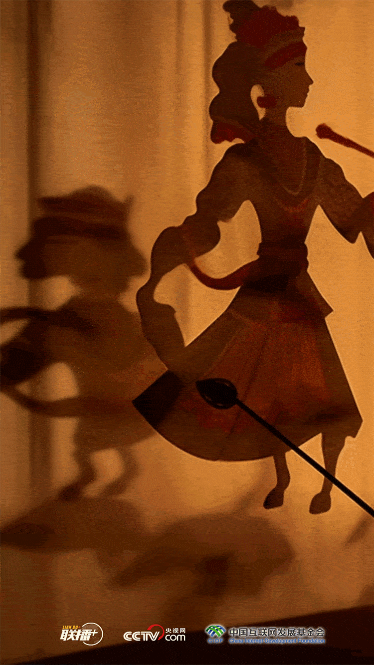 聯(lián)播+“一口道盡千古事,雙手對(duì)舞百萬兵?!逼び八嚾瞬倏仄ぶ苹蚣堉频牟噬芭夹蜗螅柚饩€照射在半透明的幕布上創(chuàng)造出動(dòng)態(tài)圖像,演繹古往今來、跌宕起伏的精彩故事。