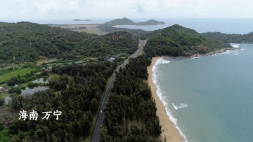 海南島東南角,驅(qū)車(chē)從萬(wàn)寧小海到石梅灣,約40公里的濱海風(fēng)光一覽無(wú)余。清退養(yǎng)殖池塘,補(bǔ)種生態(tài)林木,曾經(jīng)臟亂破敗的岸灘,如今成了當(dāng)?shù)刈蠲篮0毒€(xiàn)。