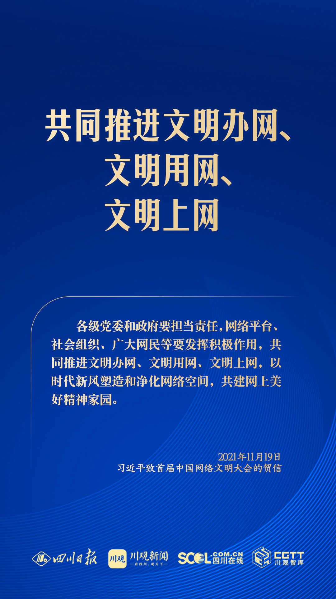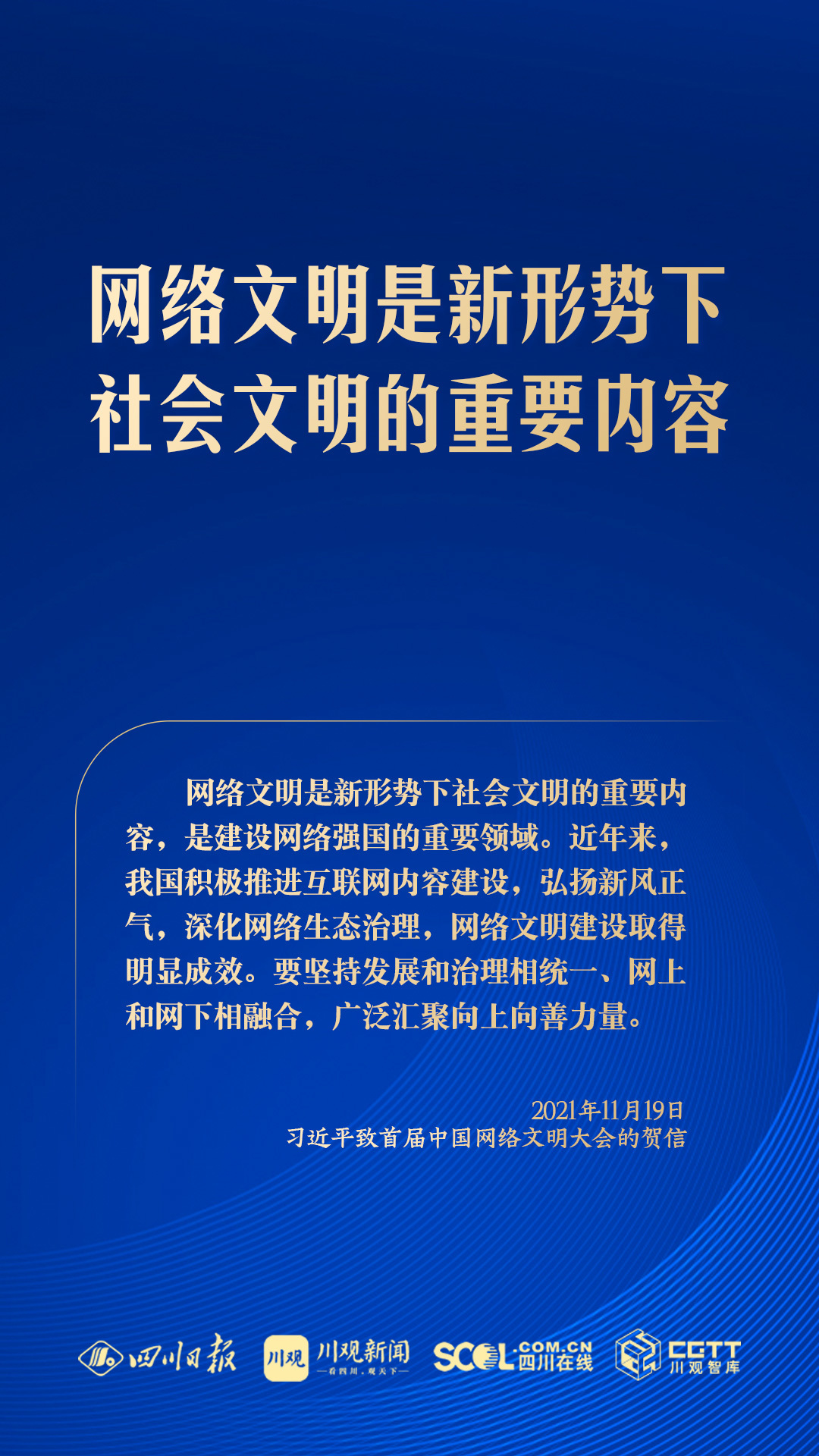 網絡空間是億萬民眾共同的精神家園。黨的十八大以來,習近平總書記高度重視網絡文明建設,把網絡文明作為社會主義精神文明建設和網絡強國建設的重要內容,引領和推動網絡文明建設取得顯著成效。2024年中國網絡文明大會舉辦之際,川觀新聞梳理習近平總書記關于網絡文明建設的相關論述,一起來學習↓↓↓