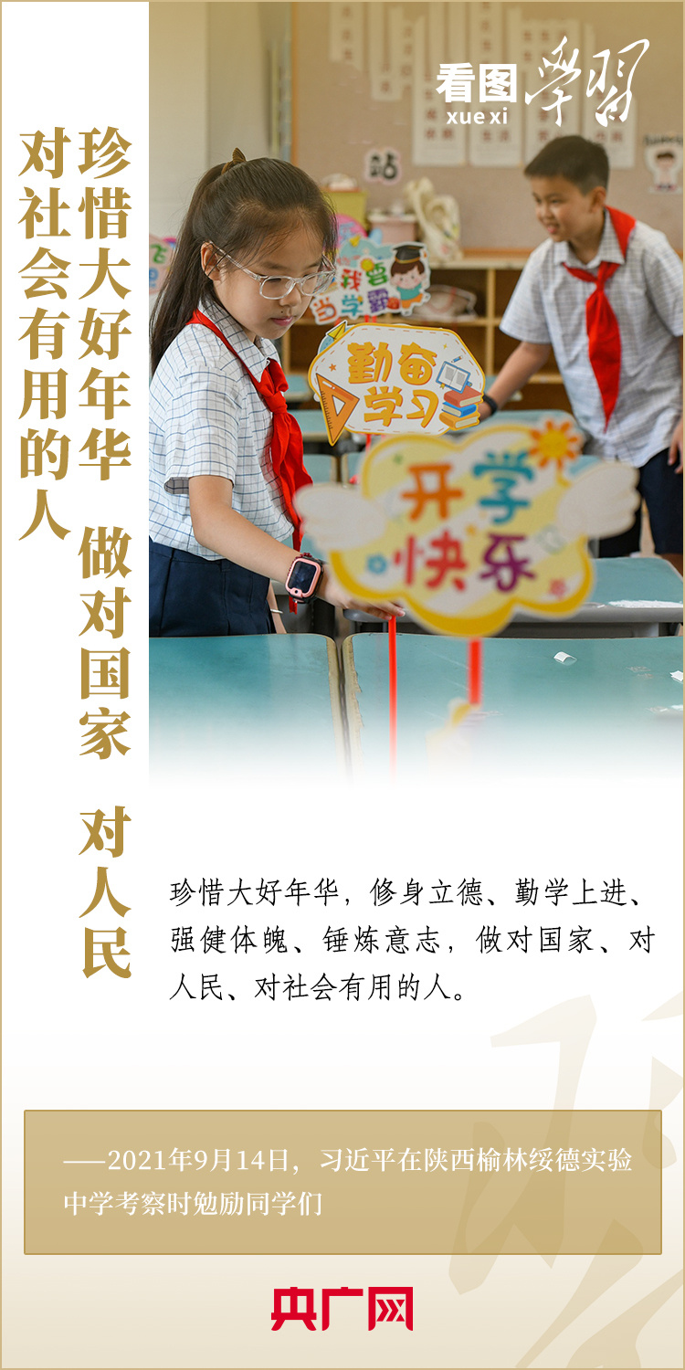“少年兒童是祖國(guó)的未來?!币恢币詠恚?xí)近平總書記高度重視和關(guān)心青少年的健康成長(zhǎng)。每每走到校園和學(xué)生們中間,總書記總會(huì)與他們談學(xué)習(xí)、談理想、談成長(zhǎng),鼓勵(lì)他們努力為自己贏得人生出彩的機(jī)會(huì),做對(duì)國(guó)家、對(duì)人民、對(duì)社會(huì)有用的人。又是一年開學(xué)季,讓我們一起重溫總書記對(duì)莘莘學(xué)子的殷切期望。一起來學(xué)習(xí)!