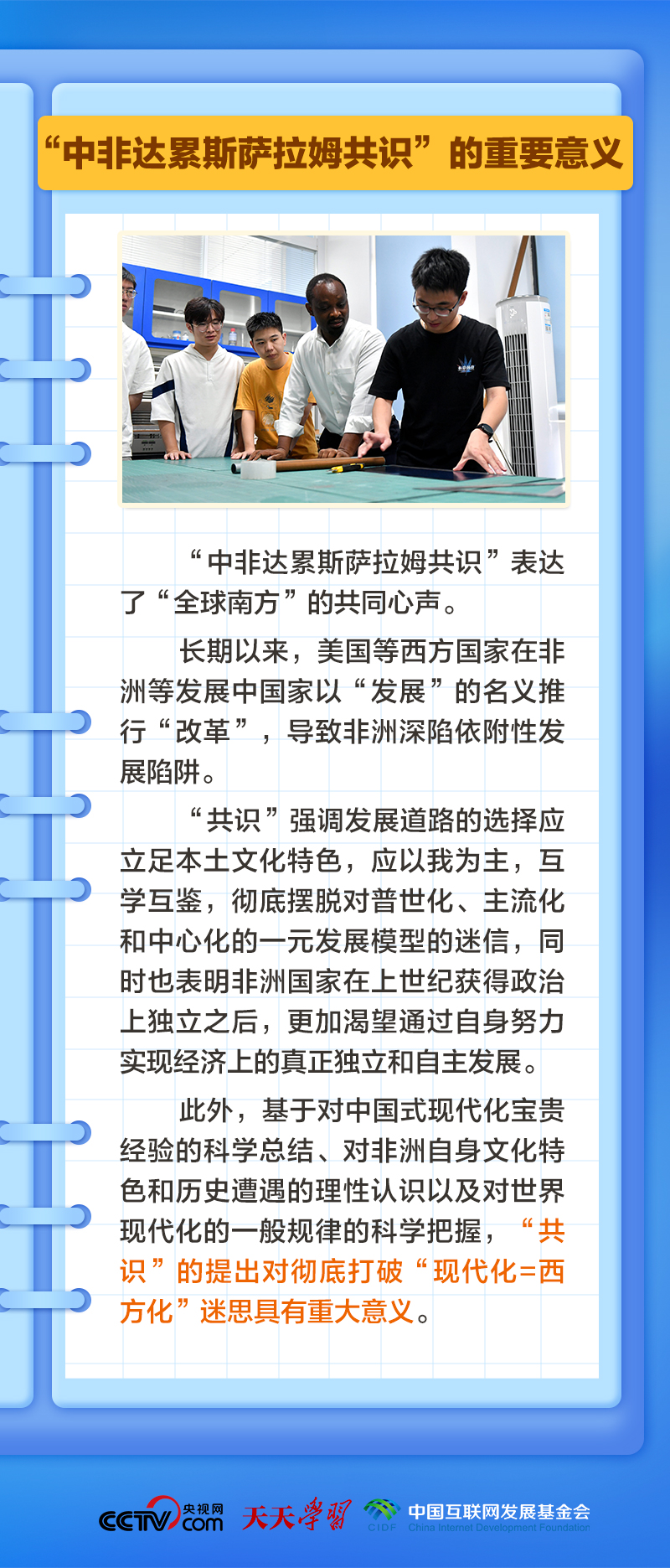 “中非達(dá)累斯薩拉姆共識(shí)”賡續(xù)中非傳統(tǒng)友誼,匯聚中非學(xué)者智識(shí)心聲,是中非深化發(fā)展理念交流的重要成果。其形成有利于徹底打破“現(xiàn)代化=西方化”的迷思,對(duì)構(gòu)建高水平中非命運(yùn)共同體意義重大。